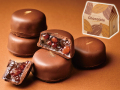 十勝産小豆の自家製甘納豆を寒天入りの蜜で固めて表面を乾燥させた人気の琥珀糖「明日香川」にチョコレートをコーティングしました。和と洋が見事に調和したお菓子です。